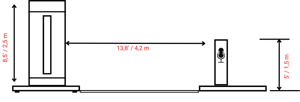 Empreinte au sol : 600 po (16 m) x 240 po (7 m)