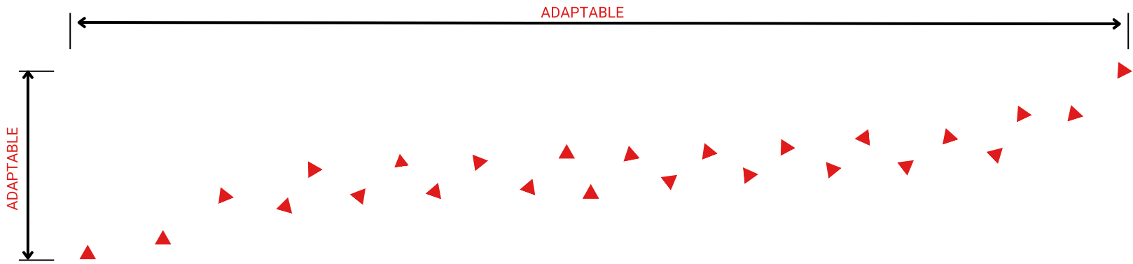 La configuration peut facilement être adaptée en fonction du site choisi pour l’installation. Un espace de 8 à 12 pieds (2.4 à 3.7 mètre) est nécessaire entre les prismes.