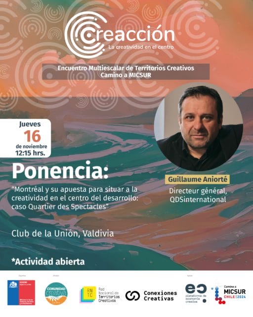 Le 16 novembre dernier, notre directeur général, Guillaume Aniorté, a eu l’opportunité d’apporter des réponses détaillées aux questions liées au marché et au développement international lors de la rencontre multi-échelle des territoires créatifs « Creacción. La créativité au centre ».